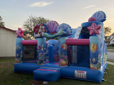 Fun under-the-sea but never leave your yard!!! And people say Mermaids aren't real??? They this jumper, slide and rock climbing wall all built in. Keep the kids busy for hours!!!