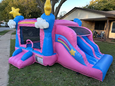 This baby castle is good for the smaller kiddos. It's fun for ages 2-5. Let the jump and slide till they fall over!!!