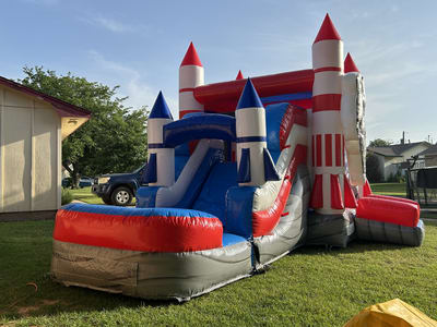 This wet/dry combo unit is only for those Kids who are "out of this world!!!" This is definitely our trademark combo unit which isn't for the typical young one. Blast off and jump or slide with this one-of-a-kind unit!!!