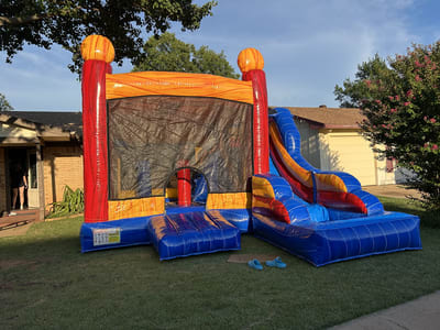 Get in and have a blast in this 4 in 1 bounce houses combo!!! You can fight the punching bags or shoot hoops!!! How about sliding down the water slide or if you don't care for a wet mess, you can use it as a dry slide as well.